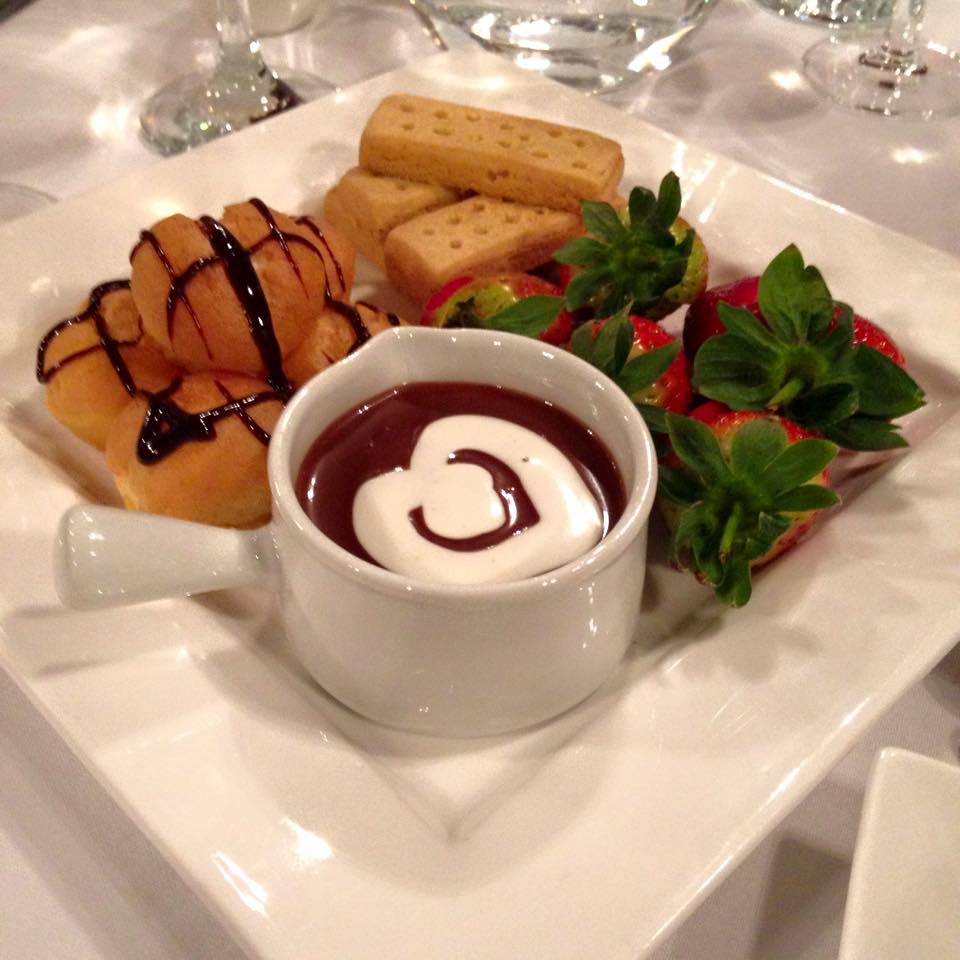 Dave and I came to a decision 3 or 4 years ago that we weren’t doing Valentine’s Day presents, just cards. Firstly it was to save up for our wedding, then it was because A) We were still skint from Christmas and B) We knew that we had a baby on the way. However, it must put pressure on people who have partners that expect big things of them from Valentine’s Day. The one time that Dave and I went out for dinner the year before last, it was in a restaurant with a jazz band playing. I don’t normally like jazz music especially, but it really added to the ambience. It was a Valentine’s evening, so it was couples only, there were vases with a single rose on each table and everyone was greeted with a glass of complimentary wine. We noticed some particularly tense body language between a couple at the table next to us. As the night progressed, we heard tiny bits of conversation, such as “Why did you bring me here?” from the woman; we began to feel sorry for her date. We thought it was lovely, but it wasn’t good enough for her for some reason. They were gone before the time we’d finished dessert. This was us that evening and our dessert: